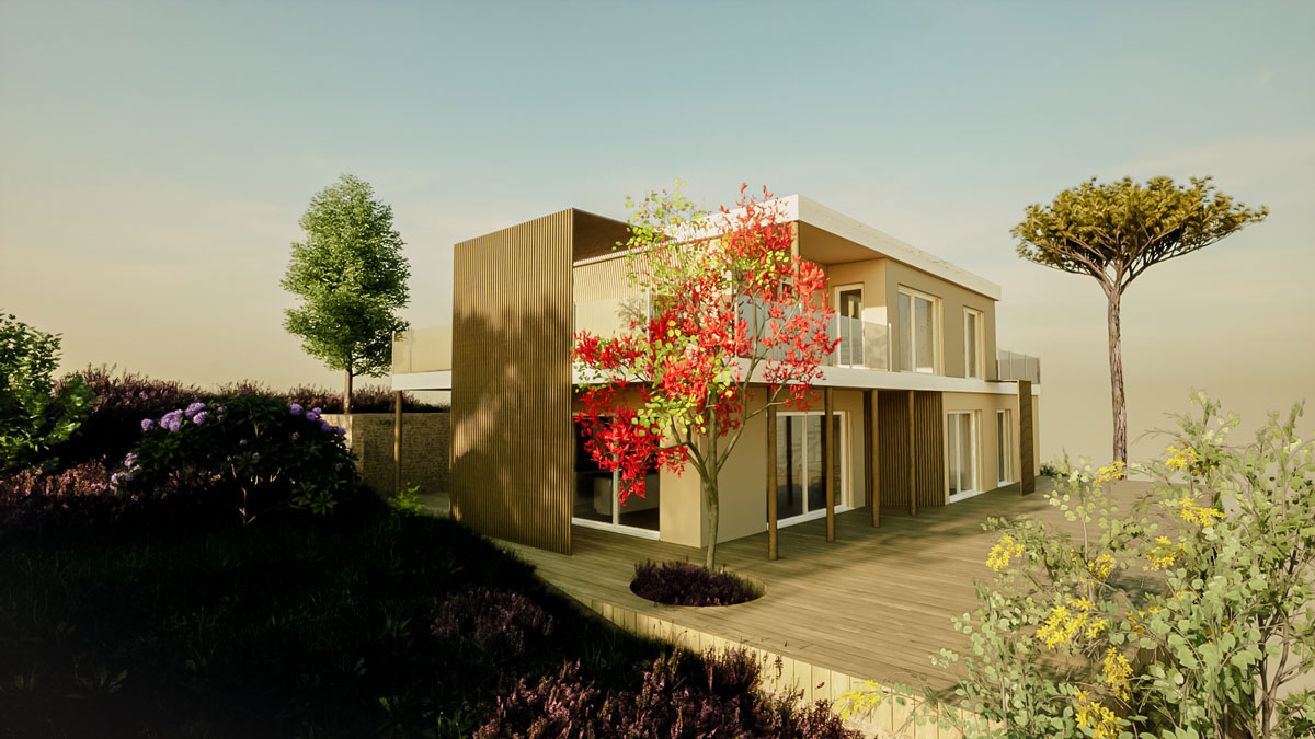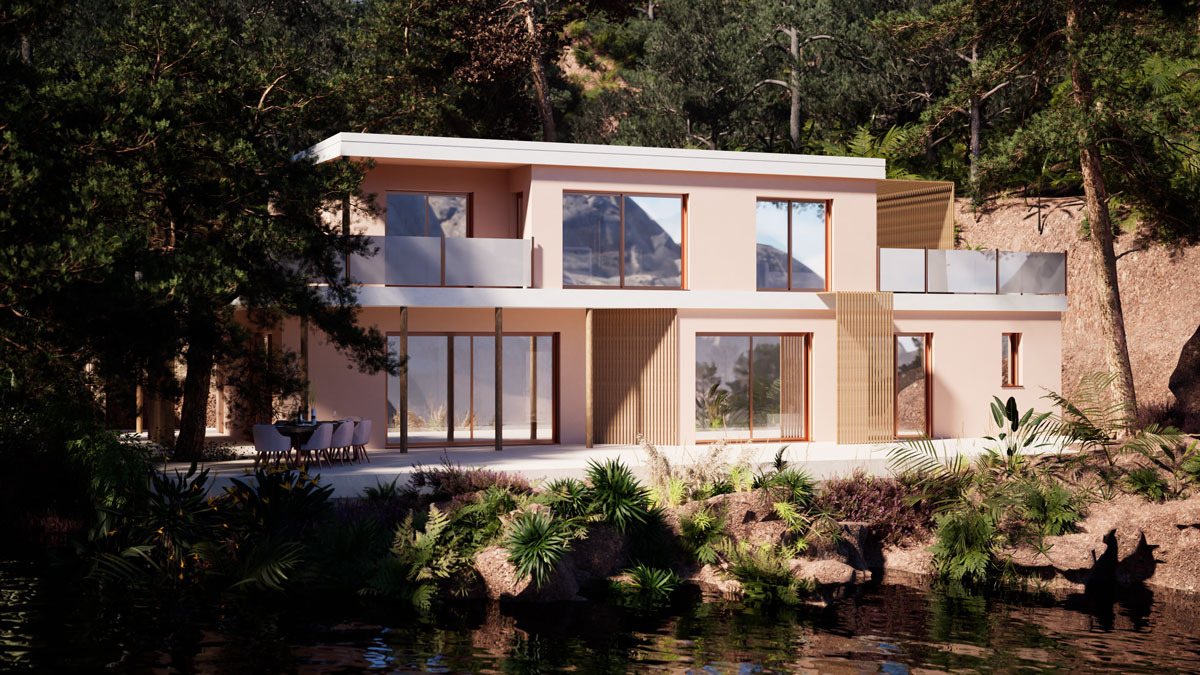 Sanagi a assuré la conception intégrale du projet : relevé, plans d’aménagement intérieur, aménagement paysager, rendus 3D photoréalistes et coordination technique, pour offrir une vision cohérente du lieu de vie dans son ensemble.